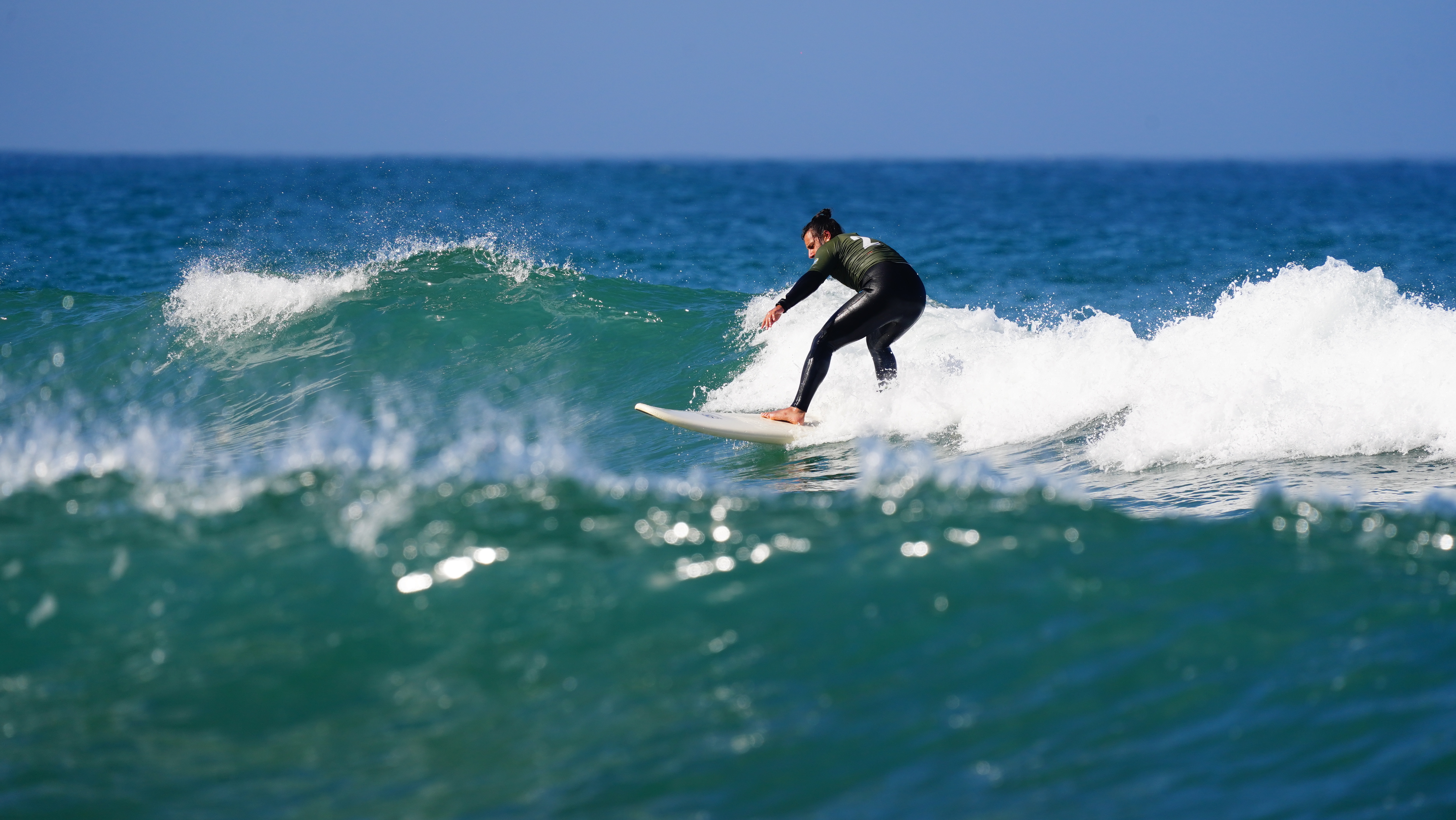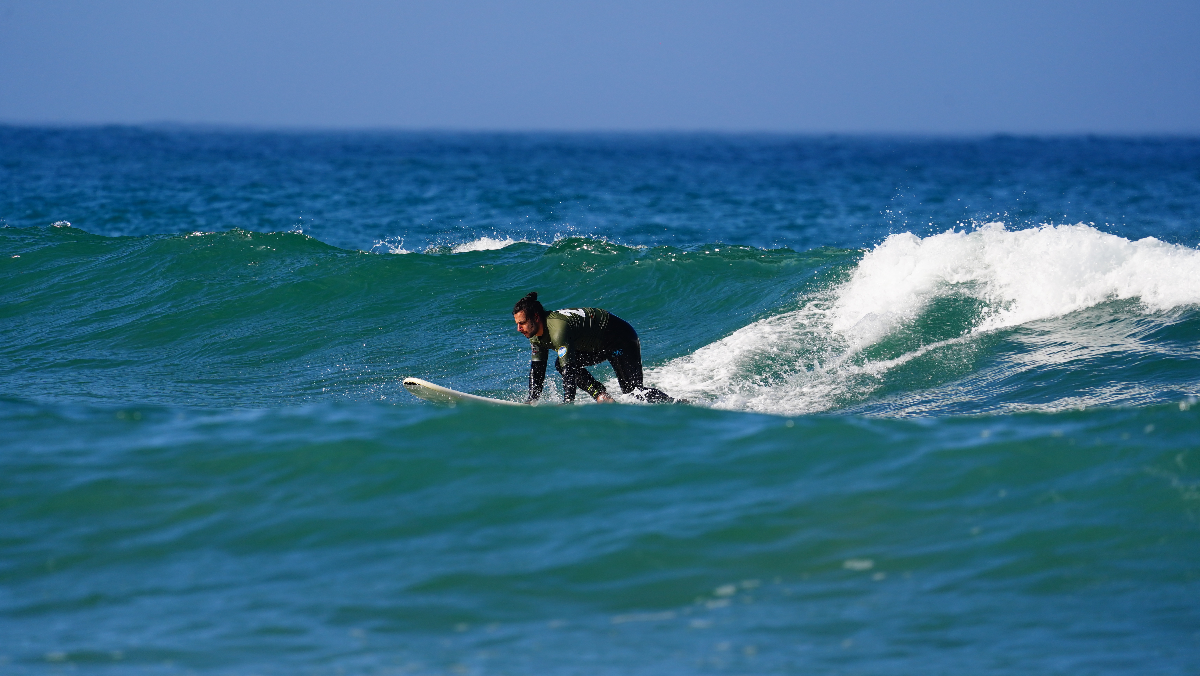 Once you’re able to stand on the white waves, you may be selected to transition from an intermediate beginner to a beginner intermediate. That means going to the green waves, where you surf the wave before it breaks